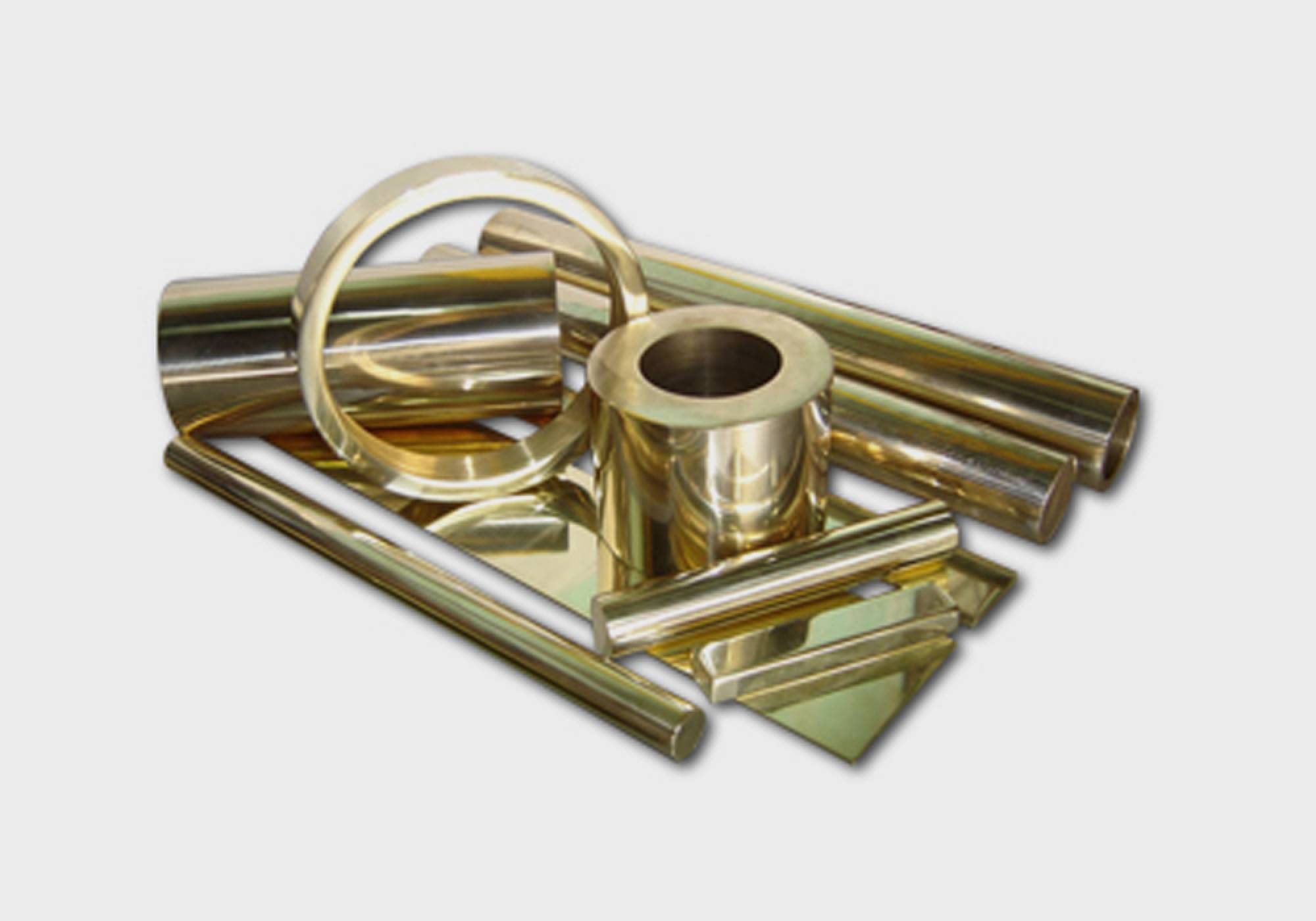 Perfis em bronze em diversos formatos.